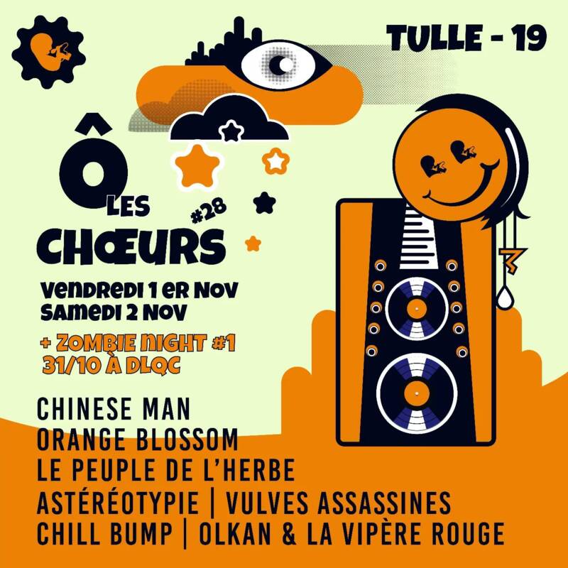 Chinese Man ! Orange Blossom ! Vulves Assassines ! Chill Bump ! Olkan et la Vipère Rouge ! Cette année, on a envie de hurler la programmation d'Ô les Chœur tant on est heureux de vous proposer ce plateau de rêve, sur 2 soirées qui s'annoncent titanesques. Après une ouverture à la salle DLQC le jeudi 31 octobre (produite par DLQC et nos amis du CVE) ça se passe les 1er et 2 novembre à la salle de l'Auzelou, afin de pouvoir être encore plus nombreux à faire trembler les murs ! On sait déjà que ça va être géant.