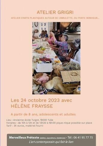 Atelier d'arts plastiques autour de l'amulette, du porte bonheur.. avec Hélène Fraysse - A partir de 8 ans, adolescents et adultes - Tarif : 35 e matériel fourni - Pique nique possible sur place -