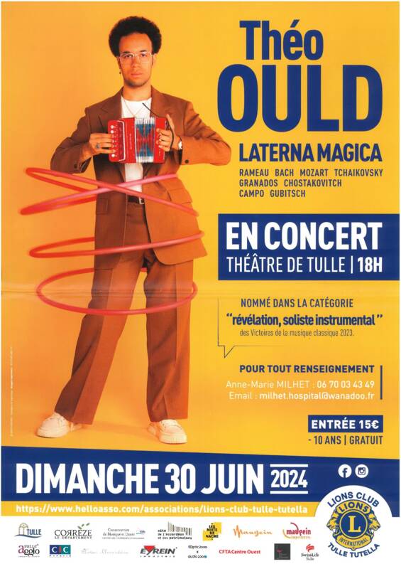 Concert : Théo OULD - Laterna Magica - Rameau - Bach - Moazrt - Tchaikovsky - Granados - Chostakovitch - Campo - Gubitsch - Entrée : 15 € - Gratuit - 10 ans - Billetterie en vente à l'Office de Tourisme de Tulle -