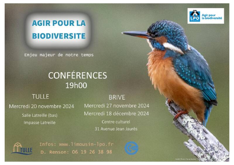 Une conférence sur la biodiversité organisée par la Ligue de Protection des Oiseaux, en partenariat avec la Ville de Tulle, est prévue mercredi 20 novembre à 19h, salle Latreille (bas).