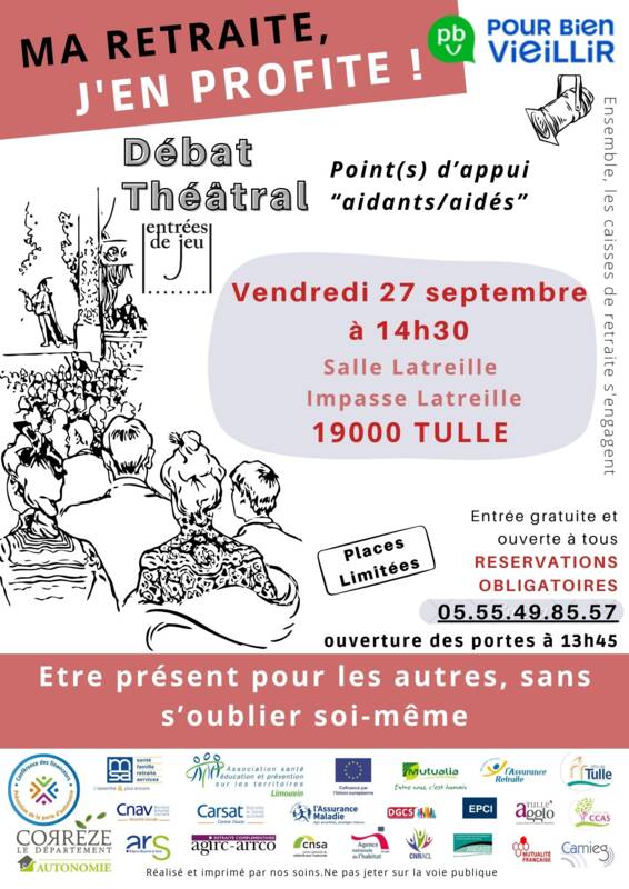 Dans le cadre de la Journée Nationale des Aidants, les régimes de retraite réunis sous l’association CAP Limousin Poitou Charentes, l’ASEPT du Limousin, La Conférence des Financeurs de la Prévention de la Perte d’Autonomie des personnes âgées de la Corrèze et leurs partenaires organisent prochainement deux représentations théâtrales sur le thème des « aidants/ aidés ».