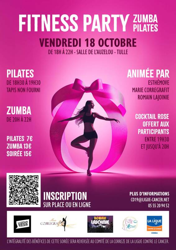 Pilates de 18h30 à 19h30 Tapis non fourni - Zumba de 20h00 à 22 h - Animé par Esthémove - Marie Corregrafit - Romain Lajoinie - Cocktail rose offert aux participants en tre 19h30 et jusqu'à 20h - Tarifs : Pilates : 7 € - Zumba : 13 € - Soirée : 15 € - Inscription sur place ou en ligne -