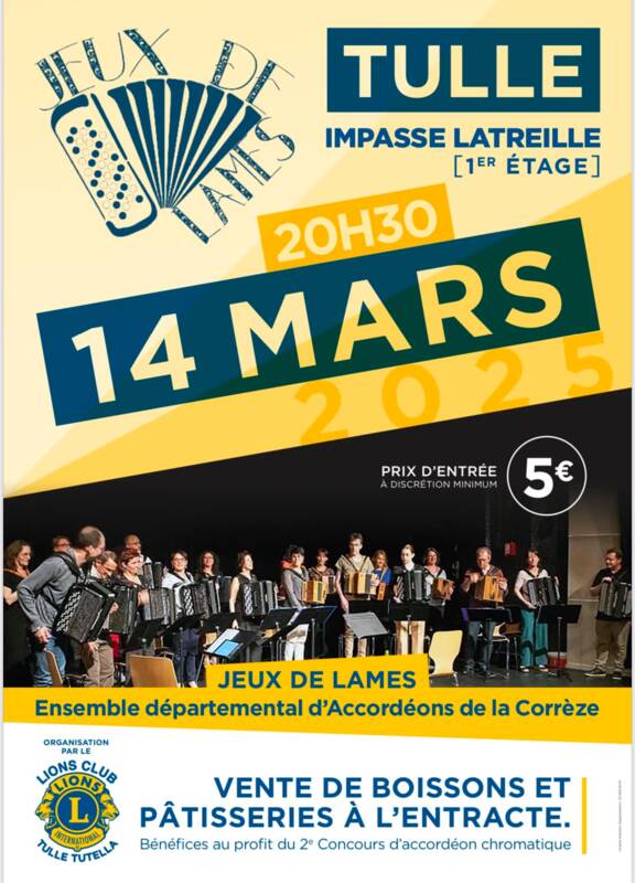 Jeux de lames. Ensemble départemental d'accordéons de la Corrèze. Vente de boissons et pâtisserie à l'entracte. Entrée : 5 €