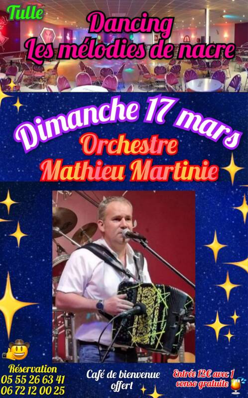 Orchestre Mathieu Martinie - Café de bienvenue offert - Entrée : 12 € avec une consommation -