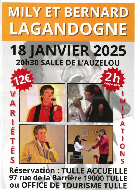 Spectacle de Mily et Bernard Lagandogne - 2 h de spectacle - Variétés et imitations - Tarif : 12 € -